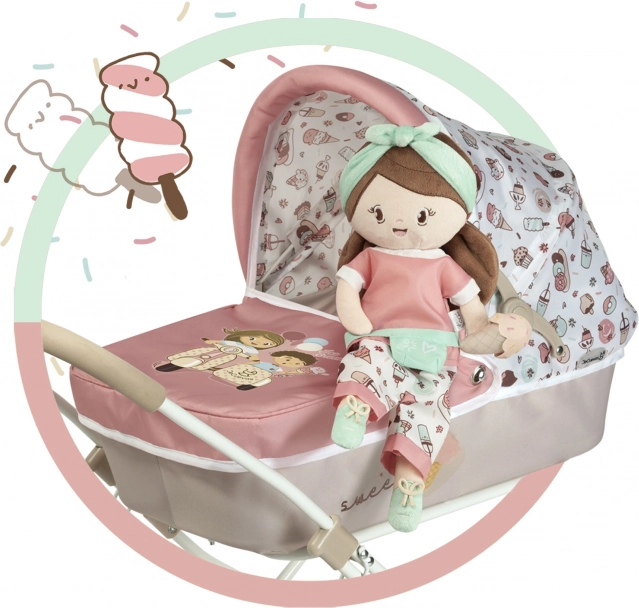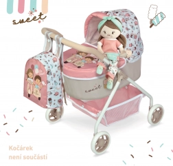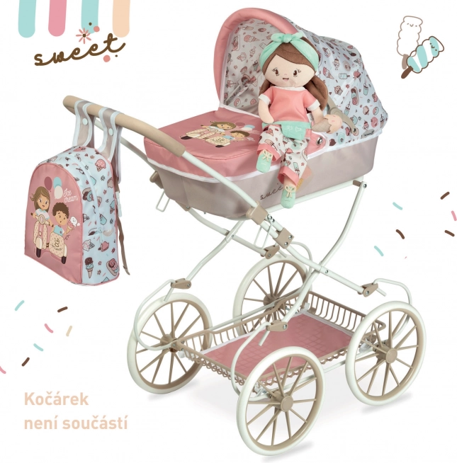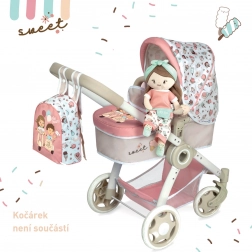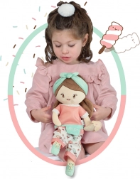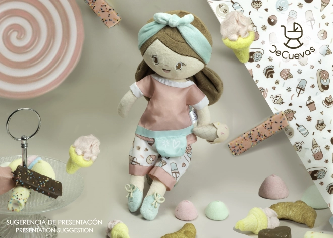 Roztomilá plyšová panenka Sweet o velikosti 36 cm je ideální první kamarádka pro nejmenší. Je vyrobena z jemného, lesklého plyše, je lehoučká, příjemná na mazlení a lze ji prát ručně na 30 °C. Sladěné barvy se zmrzlinkovým motivem a španělský design potěší každou malou princeznu.