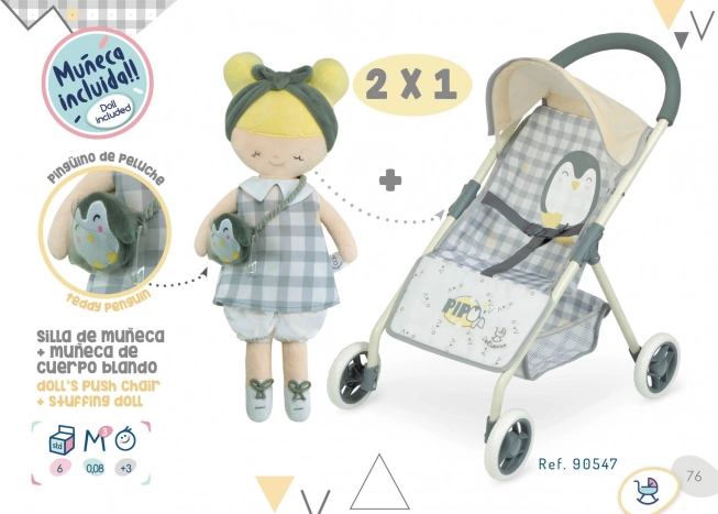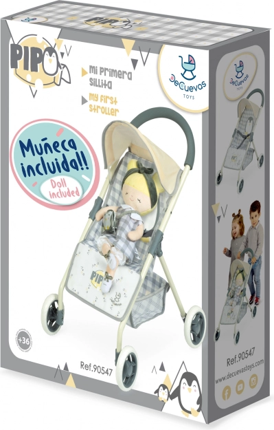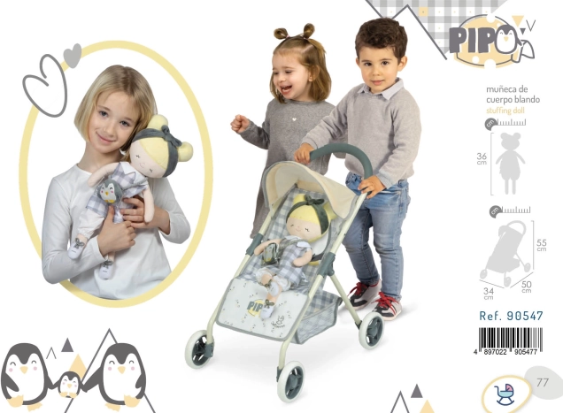 DeCuevas Sportovní kočárek pro panenky s plyšovou panenkou PIPO 2022 je součástí nové kolekce pro rok 2022, která přináší kvalitní a stylové doplňky pro budoucí hospodyňky. Tento kočárek je charakteristický svým elegantním španělským designem a precizním zpracováním. Snadno se s ním manipuluje, což oceníte při hře i uskladnění.