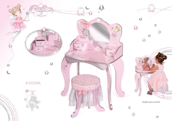 Dřevěný toaletní stolek s židličkou Magic Maria