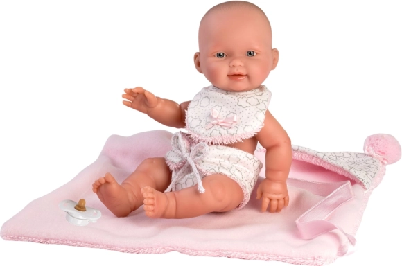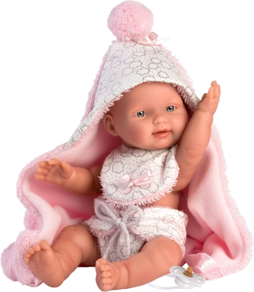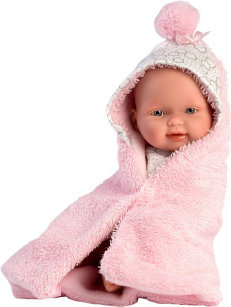 Tento dvoudílný obleček je navržen speciálně pro panenku miminko New Born o velikosti 26 cm. Obsahuje oboustrannou dečku s kapucí, která chrání panenku a dodává jí vzhled skutečného miminka.