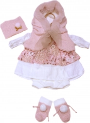 Obsahuje šaty, čepičku, čelenku, ponožky a šálu, které lze libovolně kombinovat.