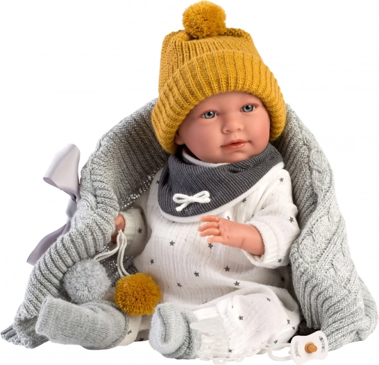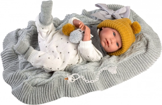 Llorens obleček pro panenku New Born 40–42 cm, 6dílná sada s oboustranným polštářem