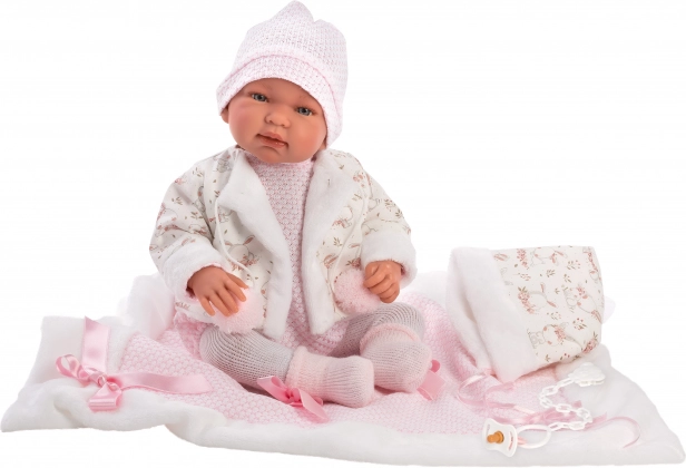 Llorens obleček pro panenku New Born 40–42 cm, 6dílná sada s oboustranným polštářem