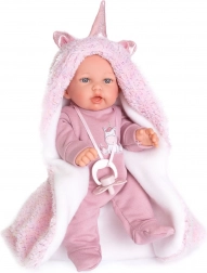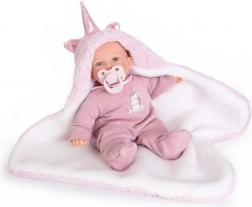 Mluvící španělská panenka od značky Antonio Juan potěší realistickými zvuky – po stisknutí bříška říká „máma“, „táta“ a vydává smích miminka. Má měkké látkové tělo, hlavu a končetiny z měkčeného vinylu, měří 27 cm, je balena v dárkové krabici a je vhodná pro děti od 3 let. Součástí balení jsou 3× LR44.
