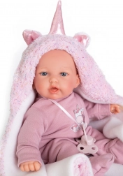 Antonio Juan Petit je pečlivě ručně vyrobená realistická panenka, která dětem nabídne jemné zvuky a příjemný dotek. Měkké látkové tělíčko láká k mazlení, zatímco hlava a končetiny z kvalitního měkčeného vinylu působí přirozeně a jsou snadno udržovatelné. Po stisku bříška panenka říká „máma“, „táta“ a zasměje se, což podněcuje rozvoj fantazie i pečovatelských dovedností.