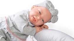 Carla od značky Antonio Juan je pečlivě zpracovaná realistická panenka – miminko, která přináší dětem autentický zážitek z péče. Měkké látkové tělo je příjemné na mazlení, zatímco hlava a končetiny z měkčeného vinylu působí přirozeně na dotek i na pohled. Díky polohovatelným kloubům lze panenku snadno posadit bez opory a přizpůsobit různým hrám na role.