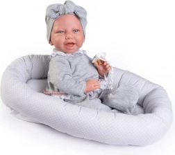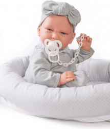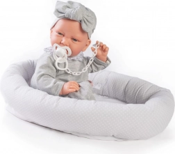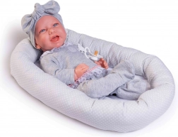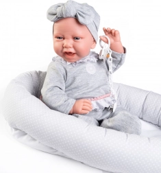 Realistická panenka Antonio Juan Carla 42 cm nadchne detailním provedením a možnostmi hry. Má měkké látkové tělo, hlavu a končetiny z měkčeného vinylu a polohovatelné klouby, díky nimž může sedět bez opory. Ručně vyrobená ve Španělsku, v setu s dudlíkem s řetízkem, čelenkou a měkkým hnízdečkem. Skvělý dárek od 3 let.