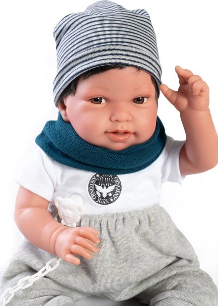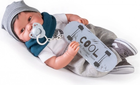 Realistická panenka miminko Antonio Juan Pipo Hair nadchne jemným výrazem, detailně propracovanými rysy a možností přirozeného polohování díky kloubům na rukou a nohou. Kombinace měkkého látkového tělíčka a měkčeného vinylu na hlavě a končetinách zaručuje velmi příjemný dotek a autentický vzhled.
