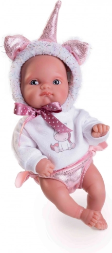 Tato realistická panenka miminko v roztomilém jednorožčím oblečku je vyrobena ze speciálního měkčeného vinylu, který je velmi příjemný na dotek a odolný pro každodenní hraní. Detailní vyobrazení miminkovských faldíků a proporcí včetně pohlaví dodává hře na rodiče přirozenost. Celovinylové provedení umožňuje panenku bez obav koupat, což rozšiřuje možnosti hry.