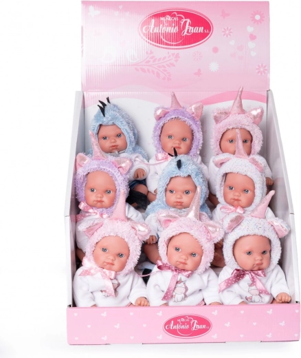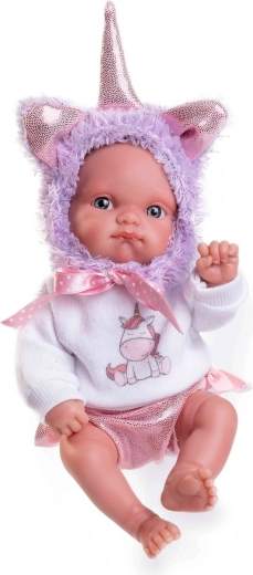 Tato ručně vyrobená španělská panenka představuje novorozené miminko s realistickými detaily, které podporují přirozenou hru a rozvoj představivosti. Celovinylové tělo z měkčeného materiálu je hebké na dotek a umožňuje koupat panenku ve vodě. Komplet doplňuje půvabný jednorožčí obleček, který z panenky dělá milovaný dárek.