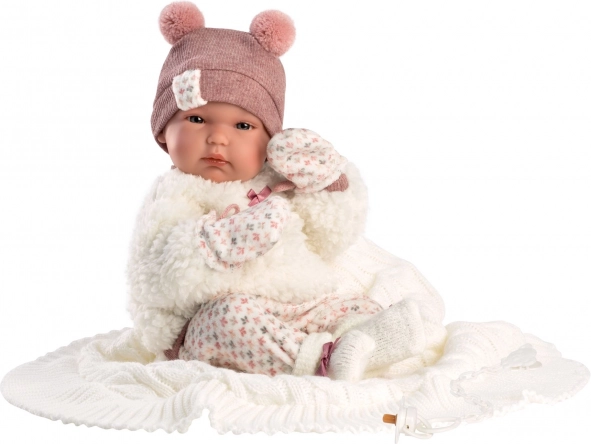 Panenka je stylově oblečena a obsahuje všechny potřebné doplňky, včetně svetrů, čepice, a dekorativního dudlíku.