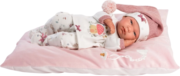 Oblečená do stylové kombinace trička, kalhot, čepice, ponožek a polštářku, panenka nabízí bohaté možnosti hry. Součástí balení je ozdobný dudlík. Vinylem osazené tělo umožňuje koupání až po krk.