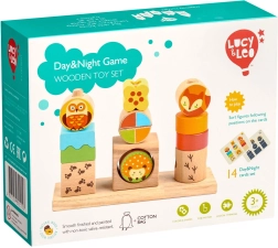 Objevte chytrou dřevěnou skládačku Lucy & Leo Den a noc, která děti hravou formou učí rozlišovat tvary a barvy. Díky oboustranným kartám s denními i nočními motivy a stabilní základně se třemi kolíky rozvíjí jemnou motoriku, logické myšlení, koordinaci ruka–oko a kreativitu. Součástí je praktický lněný pytlík pro ukládání dílků.