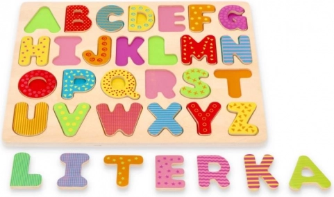 Tato dřevěná skládačka s velkými písmeny pomáhá dětem hravou formou zvládnout abecedu, rozvíjí koordinaci ruka–oko a trénuje trpělivost. Robustní deska o tloušťce 1,2 cm zajišťuje stabilitu a dlouhou životnost, jednotlivé dílky se snadno vkládají i vyjímají.
