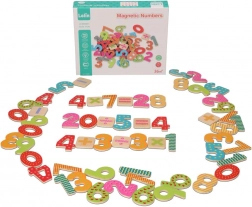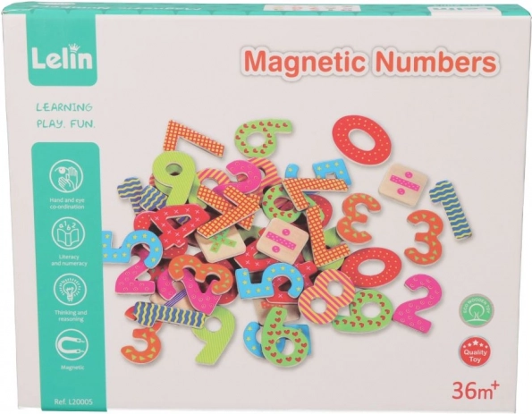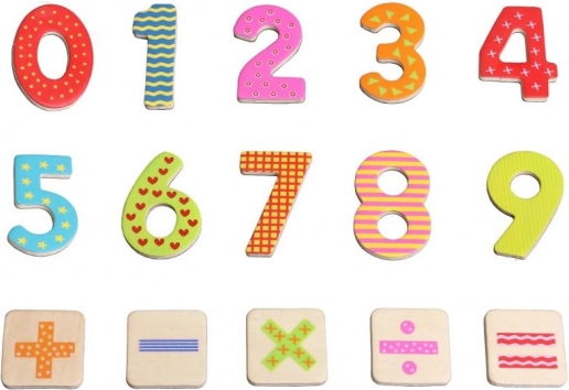 Tato sada magnetických dřevěných číslic a matematických znaků přináší hravý způsob, jak děti seznámit se základy matematiky. Každý dílek je pevný, barevný a díky magnetu drží na všech kovových površích – od kuchyňské lednice až po školní tabuli.
