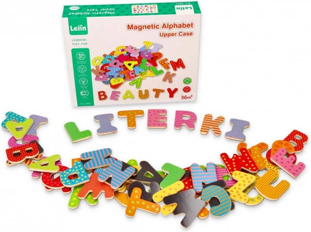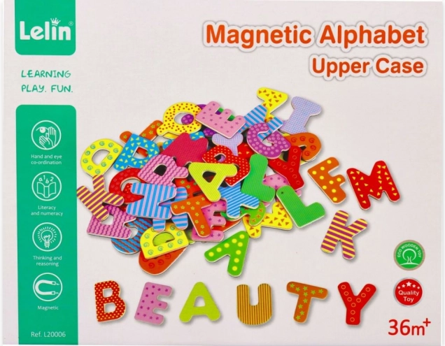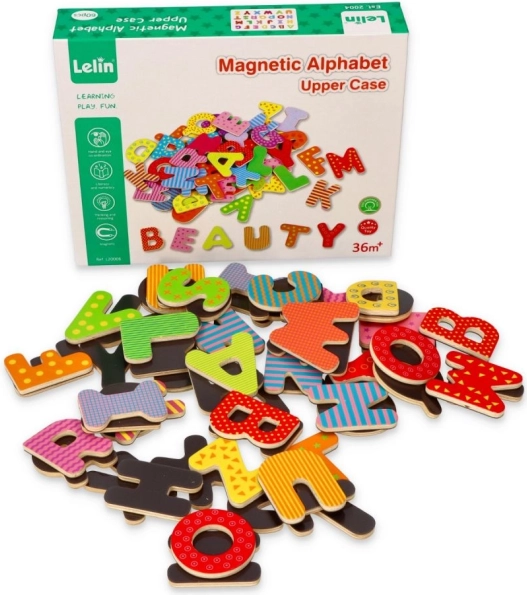 Tato sada magnetických dřevěných písmenek podporuje přirozené učení formou hry. Díky magnetické zadní straně drží na lednici, magnetické tabuli či kovových plochách, takže se děti mohou snadno učit abecedu, skládání slabik a prvních slov.