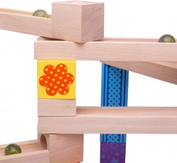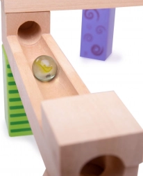 Dráha podporuje prostorovou orientaci, jemnou motoriku a logické myšlení. Děti budou fascinovány tím, jak kuličky jemně sjíždějí po dráze, kterou si samy vytvoří.