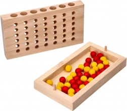 - Hráči si zvolí barvu a střídavě vkládají kuličky do otvorů na hrací desce.