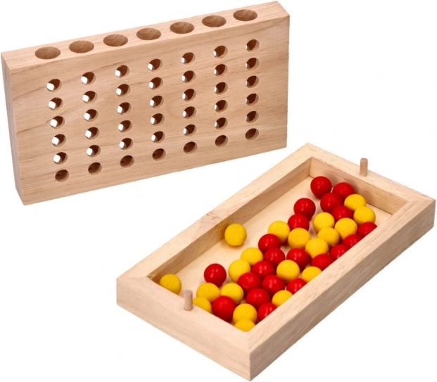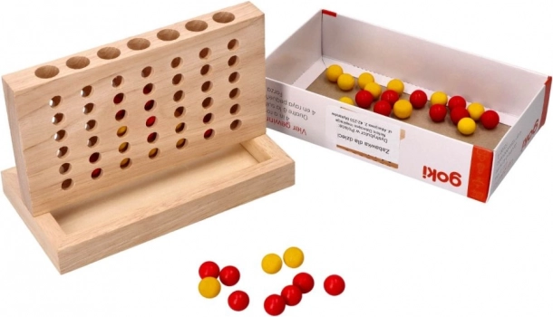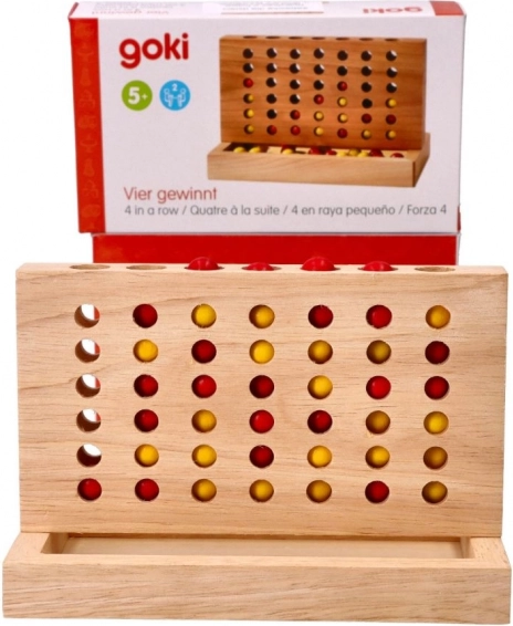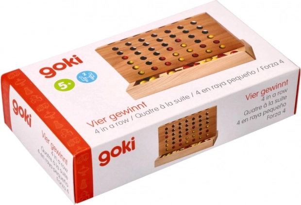 Goki dřevěná hra Čtyři v řadě je strategická stolní hra, která poskytuje nekonečné hodiny zábavy pro dva hráče. Cílem je být první, kdo spojí čtyři kuličky ve vodorovné, svislé nebo diagonální řadě.
