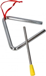 Triangl patří mezi nejoblíbenější dětské bicí nástroje – stačí jej držet za šňůrku a lehce udeřit paličkou, aby vznikl jasný, dlouze doznívající tón. Kovové provedení vyniká odolností a jednoduchostí, takže je vhodné pro domácí hraní i do školek a hudebních kroužků.