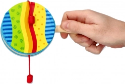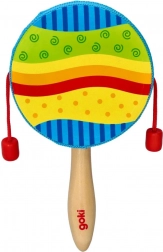 Roztočte rytmus s dětským ručním bubínkem GOKI! Tento barevný hudební nástroj z přírodního dřeva se rozeznívá otáčením rukojeti, kdy korálky na šňůrkách nahrazují paličky. Skvělý pro první muzicírování, rozvoj rytmu a koordinace, ideální do školek i domů. Bezpečné materiály, snadné ovládání a zábavná zvuková odezva podpoří dětskou radost z hudby.