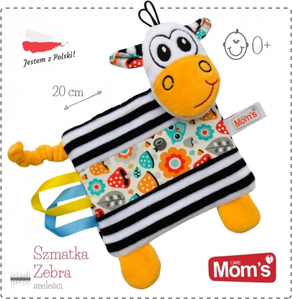 Tato hebká plyšová zebra s visačkami je perfektní společník do postýlky, kočárku i na cesty. Kombinuje příjemný dotykový materiál s praktickými detaily pro smyslové objevování a uklidnění dítěte. Vyrobeno v Polsku s důrazem na kvalitu a bezpečnost, s platnou deklarací shody CE.