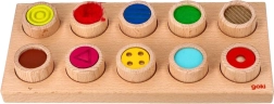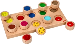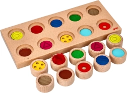 Tato kvalitní dřevěná smyslová hra propojuje zábavu s učením. Deset miniválečků s různými povrchy děti otáčejí lícem dolů, promíchají a pouze dotykem zjišťují, kam přesně patří. Skvělá pomůcka pro rozvoj senzomotoriky, soustředění a trpělivosti, vhodná i pro zrakově postižené.