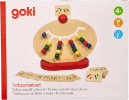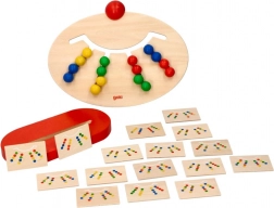 Učí děti rozpoznávat a třídit barvy pomocí různobarevných kuliček a vzorů.