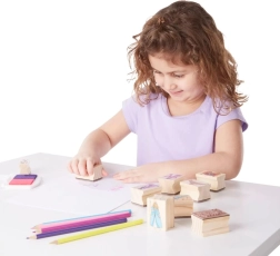 Stempleky mají snadnou manipulaci díky dřevěným blocích, které zajišťují komfortní uchopení a přesné tisky na papír. Skvělá volba pro vzdělávací a zábavné aktivity doma.