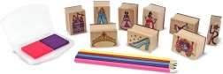 Každý stempelek zobrazuje jiný motiv z pohádek, jako jsou princezny a zámky, což podporuje fantazii dětí.