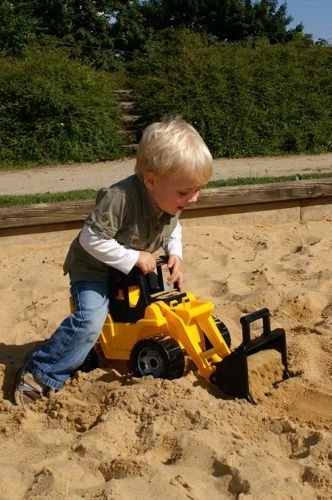 Statická nosnost až 100 kg svědčí o pevné konstrukci a bezpečném provedení. Hra s nakladačkou podporuje jemnou i hrubou motoriku, koordinaci pohybů a tvořivou hru.