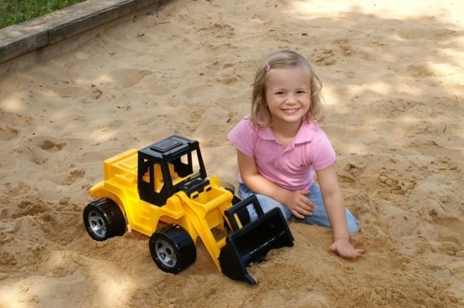 Velká plastová nakladačka o délce 64 cm pro hraní na pískovišti i doma. Nabízí pohyblivou přední lopatu, odolné provedení z kvalitního plastu a nosnost až 100 kg (statické zatížení). Ideální pro děti od 3 let, rozvíjí motoriku a fantazii.