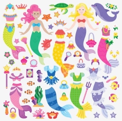 Pestré motivy mořských víl, zvířátek a doplňků umožní dětem skládat stále nové scény a příběhy bez omezení.