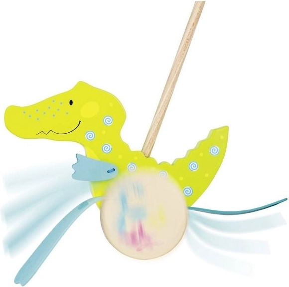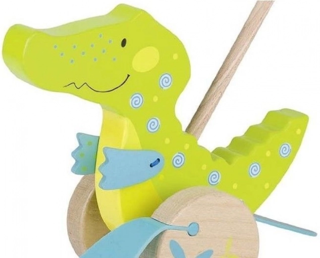 Dřevěný krokodýl na tyči GOKI je barevné strkadlo, které děti zaujme pohyblivými ploutvičkami a veselým klapáním při jízdě. Díky dlouhé tyči mají děti hračku stále na očích a snáze tak řídí svou objevitelskou trasu. Kvalitní masivní dřevo a pečlivé zpracování zaručují dlouhou životnost i bezpečnou hru.