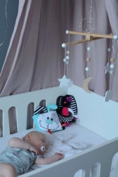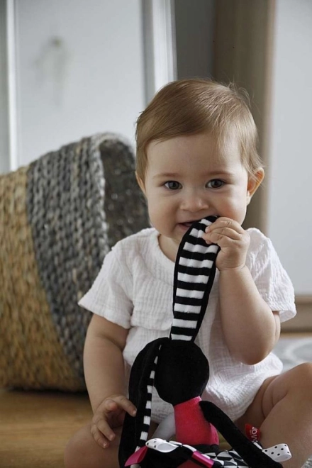 Černo-bílé proužky a výrazné barvy přitahují pozornost miminka a podporují zdravý vývoj vizuální percepce už od narození.
