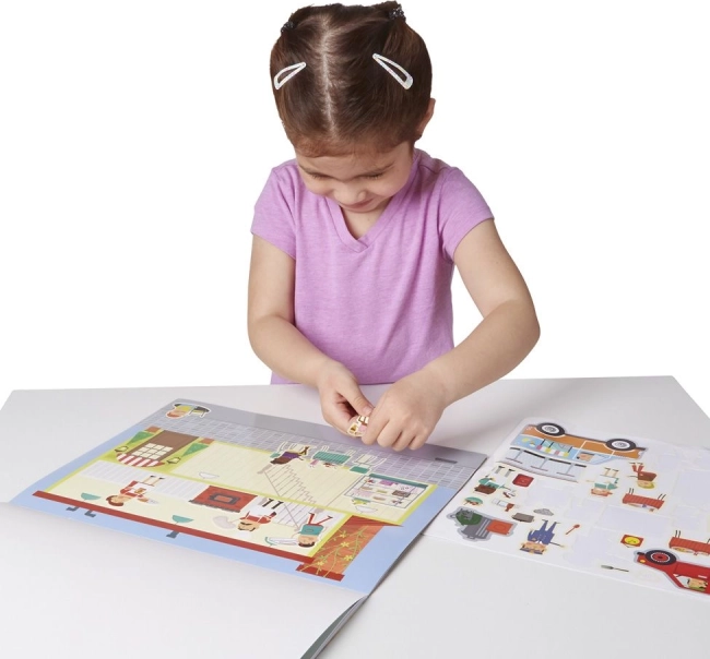 Každá sada obsahuje opakovaně použitelné samolepky, které lze snadno přemisťovat a znovu nalepovat, což dětem umožňuje vytvářet nekonečné variace scén.