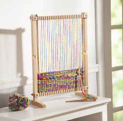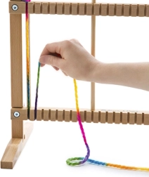 Toto krosno pomáhá dětem zlepšovat koordinaci ruky a očí prostřednictvím zábavného a interaktivního procesu tkaní.