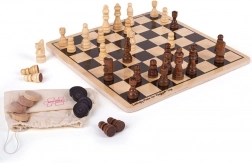 Tento set kombinuje šachy a dámu, což přináší dvojnásobnou zábavu a mnohostrannost.