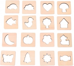 Hmatová hra Poznej tvary v rámečku je vytvořena z kvalitního přírodního dřeva. Obsahuje 16 rámečků o rozměrech 5,9 x 5,9 cm a 16 barevných vyřezávaných tvarů, které stimulují hmat a smyslové vjemy dětí. Jednoduchým skládáním a hledáním tvarů v pytlíku dochází k zábavnému učení. Hru lze hrát různými způsoby, včetně hledání tvarů pouze po hmatu, což přidává na jejím kouzlu.