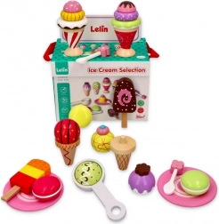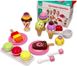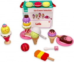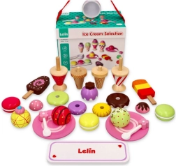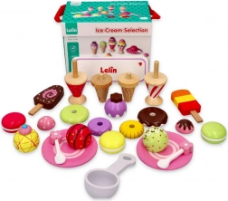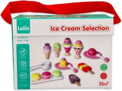 S elegantní dřevěnou sadou zmrzliny od značky Lelin se každé dítě stane zmrzlinářem. Tento set obsahuje 25 barevných částí a je ideální pro děti starší 3 let. Hračky jsou vyrobeny z lakovaného dřeva a jsou baleny v pevné krabici s pohodlnou klapkou a držadlem pro snadné přenášení.