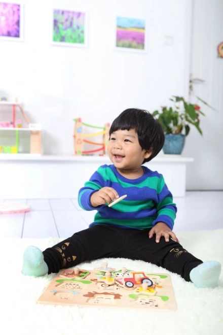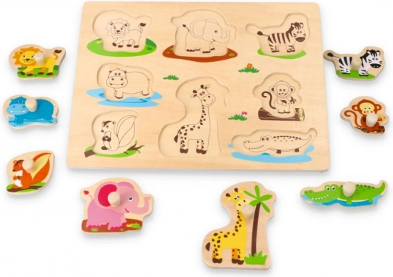 Dřevěná puzzle deska Džungle nabízí skvělou zábavu a učení pro vaše nejmenší. Tato edukativní hračka vybízí k rozvoji jemné motoriky a rozpoznávání různých zvířat.