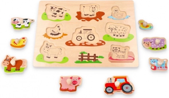 Objevte kouzlo farmy s touto dřevěnou skládačkou. Děti budou nadšené objevováním postav a scén z farmy, které jim přiblíží život na venkově. Speciální úchyty usnadňují manipulaci s jednotlivými dílky, díky čemuž je hračka vhodná i pro nejmenší.
