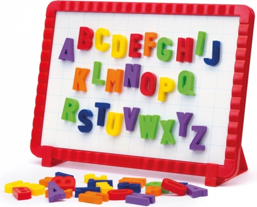 - 48 magnetických písmen, magnetická tabule, 2 stojánky, stíratelný fix, houbička