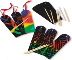 Tato sada obsahuje 12 černých záložek, které po poškrábání odhalí pestrobarevné vzory a texty. Bezpečné a ideální pro děti od 4 let, ale jsou také zábavou pro starší, kteří si chtějí vyzkoušet něco nového.