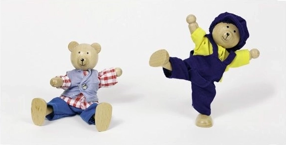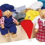 Tato roztomilá sada přináší dvojici medvídků s bohatou nabídkou oblečků a doplňků, uloženou v přehledné dřevěné krabičce. Děti mohou skládat hlavičky, tělíčka a nožičky, vytvářet veselé kombinace a učit se barvy a nálady.