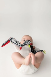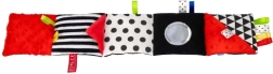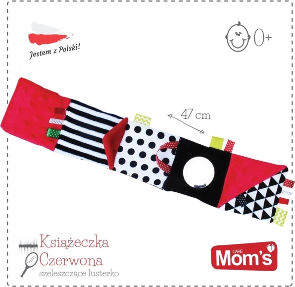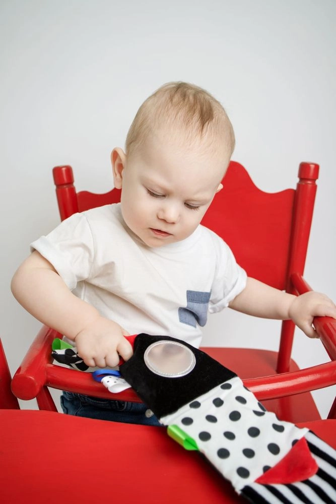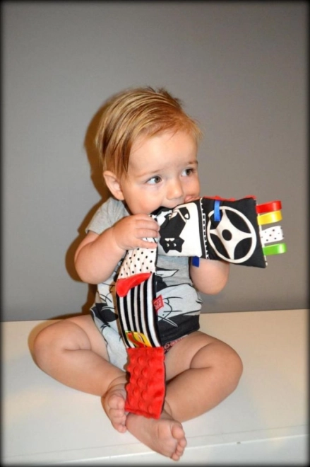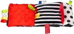 Červená smyslová knížka je navržena pro novorozence a kojence 0+. Vysoký kontrast černobílých grafik s červenými akcenty přirozeně poutá dětskou pozornost, zatímco měkké polstrování a rozmanité textury zvou k doteku. Díky kompaktním rozměrům ji snadno vezmete do kočárku nebo připevníte do zorného pole miminka.