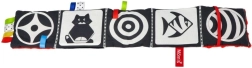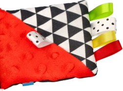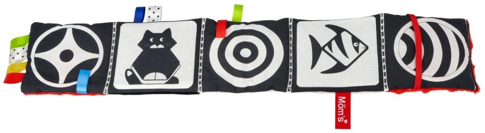 Černobílé motivy s červenými akcenty přitahují pozornost novorozenců a pomáhají rozvíjet ostrost vidění a sledování objektů.