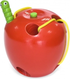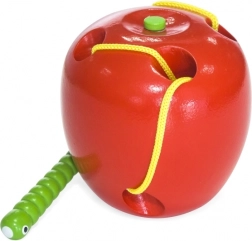 Jablíčko je vyrobené z bukového dřeva a lakované bezpečnými, netoxickými barvami v živých odstínech, které děti motivují k opakované hře. Ideální jako Montessori pomůcka pro rozvoj jemné motoriky a soustředění u dětí od 3 let.