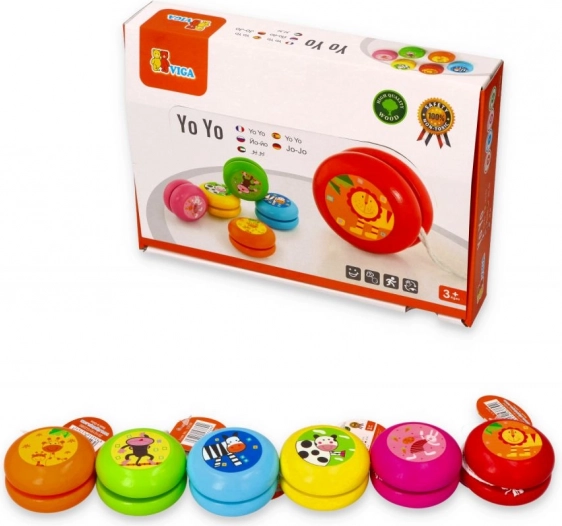 Klasické dřevěné jojo v pestrých barvách přináší dětem hodiny zábavy a zároveň rozvíjí koordinační schopnosti, sou-středění a reflexy. Díky kompaktním rozměrům ho dítě snadno schová do kapsy a může si hrát kdekoli a kdykoli. Na výběr jsou roztomilé zvířecí motivy – kravička, žirafy, králíček, lev, opička a zebra. Cena je za 1 kus, barva/motiv se odesílá náhodně.