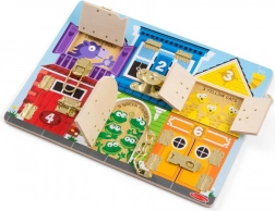 Tato dřevěná motivační tabule je ideální pro děti ve věku 3 a více let. Je navržena tak, aby rozvíjela jemnou motoriku a učila děti řešení problémů. Tabule obsahuje různé zámky a klapky, které podporují koncentraci a jemnou motorickou koordinaci.
